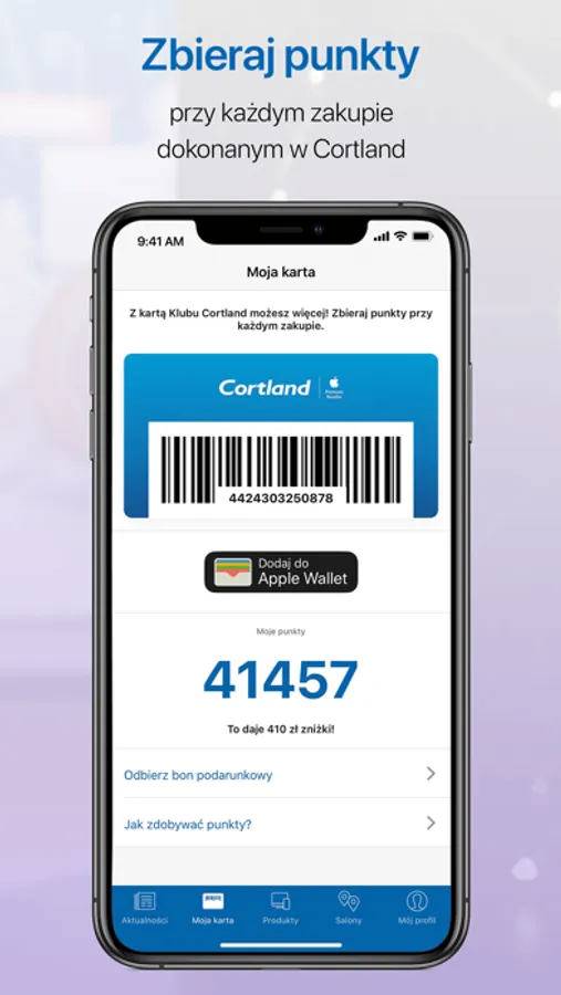 Dzięki aplikacji Cortland przy każdym zakupie możesz zbierać punkty, które wymienisz na bony podarunkowe i nie tylko.