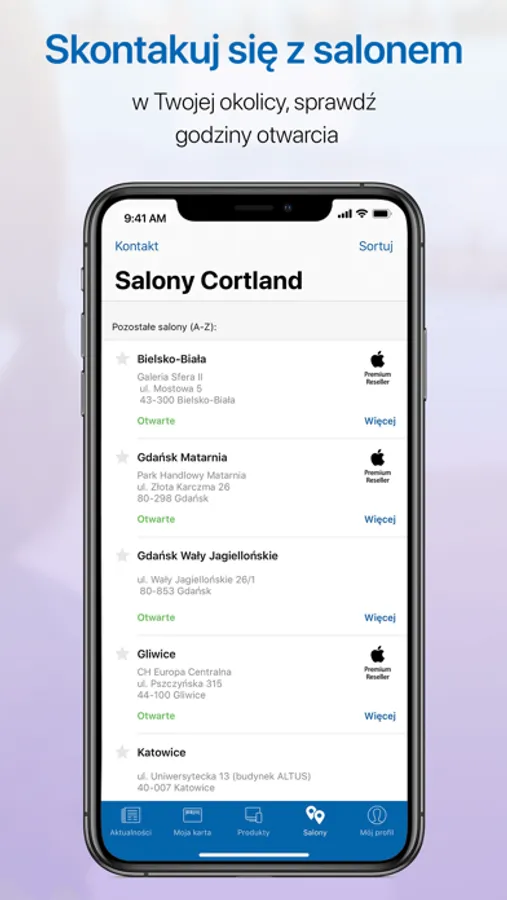 Z aplikacją Cortland możesz korzystać z ofert specjalnych przeznaczonych tylko dla klubowiczów. Będziesz na bieżąco z nowinkami i jako jeden z pierwszych będziesz miał możliwość zamówienia premierowych urządzeń Apple.