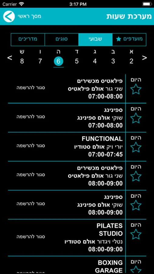 הרשמה לשיעורי סטודיו, מידע כללי על המועדון: שעות פעילות, לוח החוגים, התראות על ביטולי שיעורים ושינוי מדריכים. חידוש מנוי, השארת פניה למועדון, תזכורת לשיעורים, רשימות המתנה, שיעורים מועדפים, קישור לפייסבוק ולאינסטגרם של המועדון ועוד.