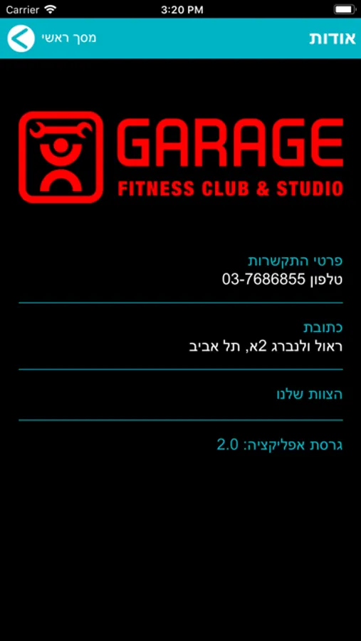 כל המידע וההתקשרות עם מועדון הכושר וסטודיו גראז' באפליקציה שלנו.