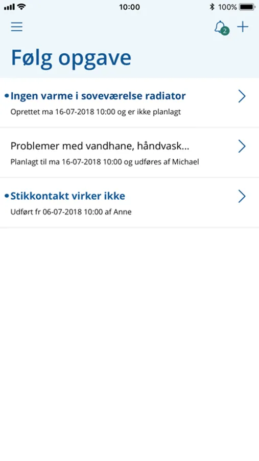 Du kan også modtage Push beskeder fra ejendomskontoret, når der er driftsproblemer i et område, f.eks. når strømmen går eller der bliver slukket for vandet.