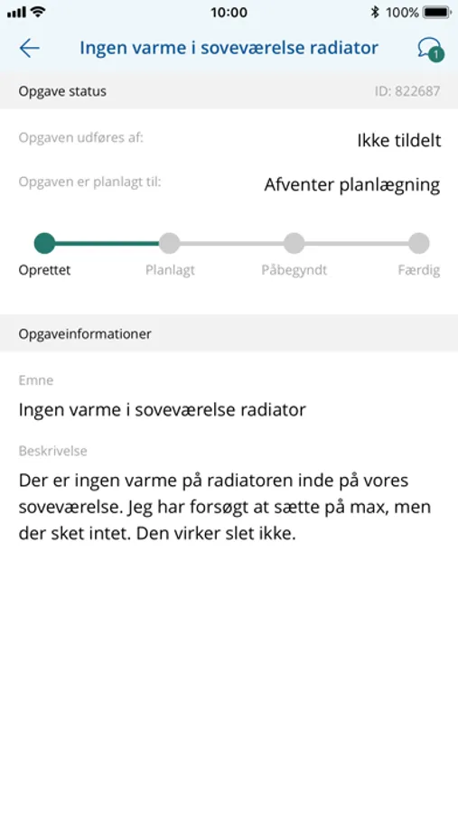 Når opgaven er sendt afsted kan du følge sagens gang, og hver gang der er nyt i sagen modtager du en besked herom. Du kan tillige skrive i sagen, hvis du har yderligere kommentarer.