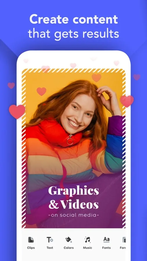 • Customize for your brand with filters, colors, fonts, add music to videos & more