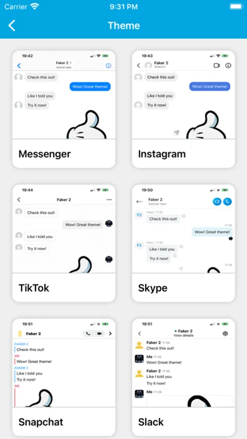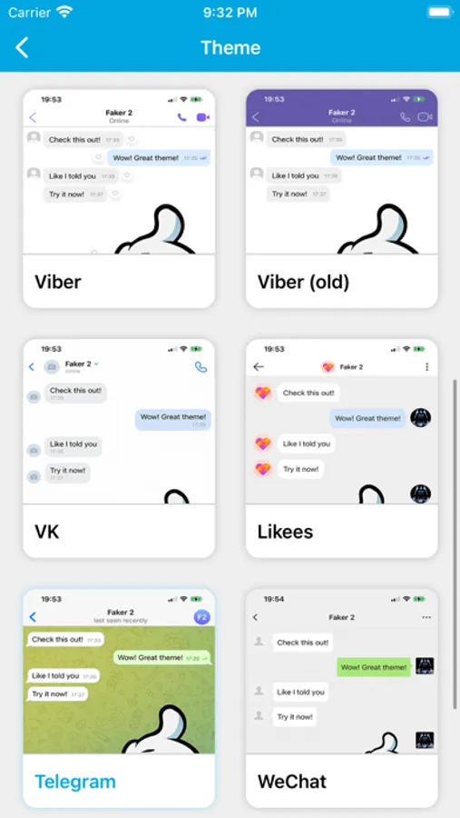 Buy awesome additional themes in order to simulate your favourite messenger: