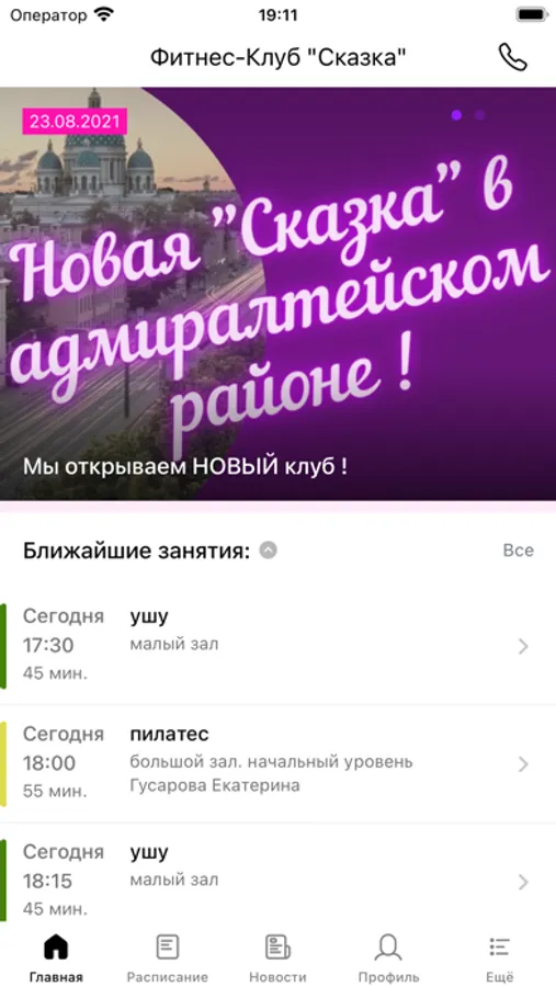 С помощью приложения вы можете следить за новостями, расписанием клуба, оперативно получать информацию об изменениях в расписании и специальных предложениях.