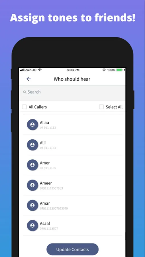 - Assign tones to specific contacts from your phone's contact list.