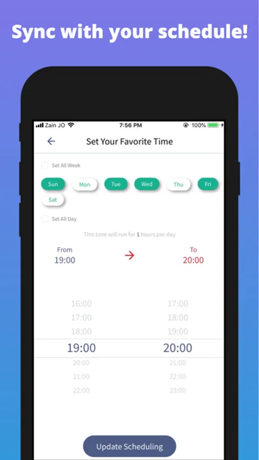 - Set a time schedule for total control over when your tones are heard.