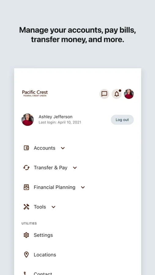 Take the virtual path to Pacific Crest's services. Check balances, make transfers, deposit checks, pay your bills, and track your budget all in one place.