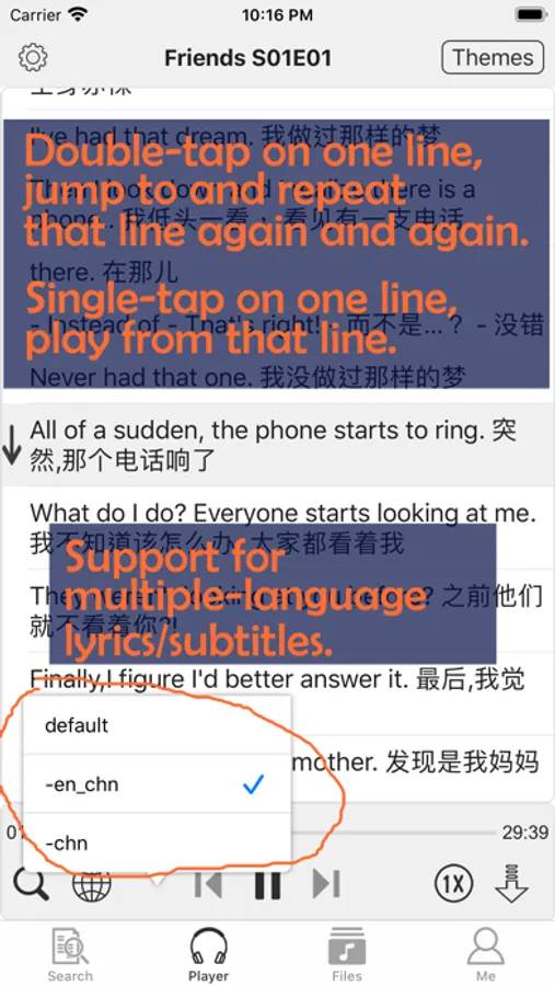 3) Double-tap one row of lyric, repeat playing mp3 only for this row.