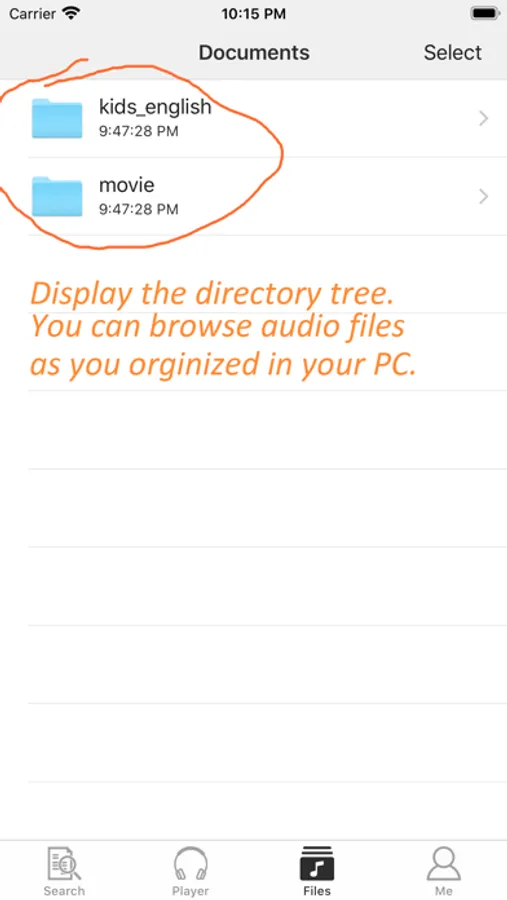 8) List directories and files just like on PC.