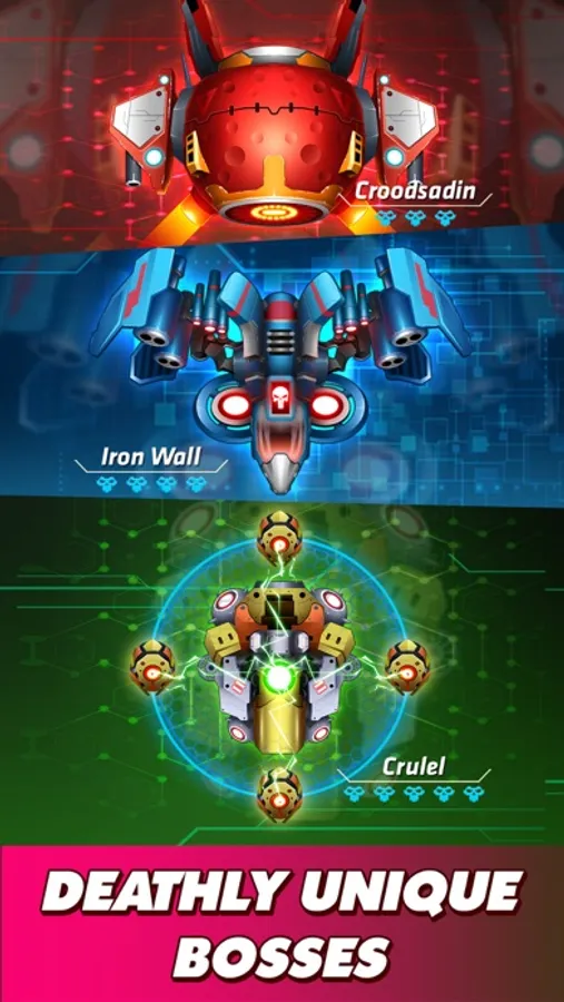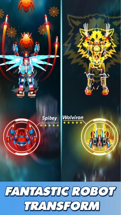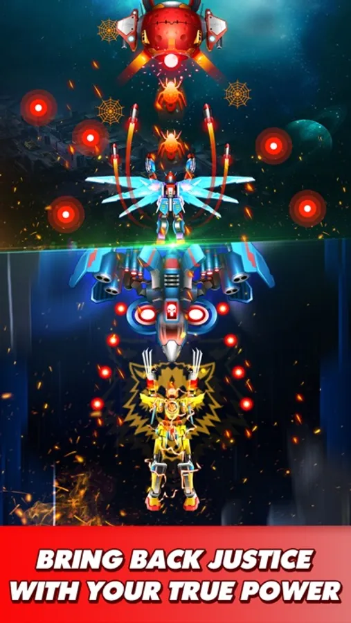 Thunder Fighter Superhero: Strikers Galaxy Attack will have both offline and online mode ( single player and multiplayer). Especially this is the game that players can transform their fighter into robots with more powerful combat power and stronger skills. Other chicken shooter games, other squadron games have never done that.