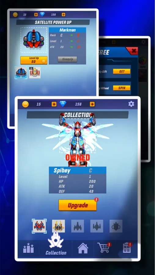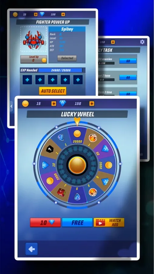 Destroy enemies and get power-up item, gold to increase your power or upgrade fighter.