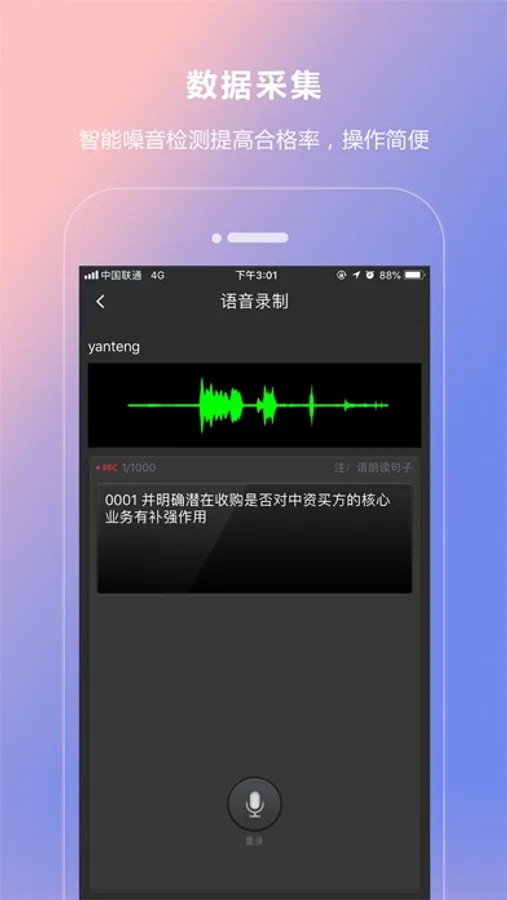 语音采集:对着手机说话,普通话、各地方言、外语