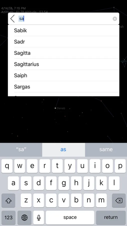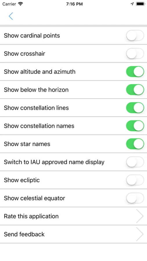 You can display the names of about 100 bright stars, constellations, ecliptic, celestial equator, Deep Sky Objects, ISS, Celestial pole, and so on.