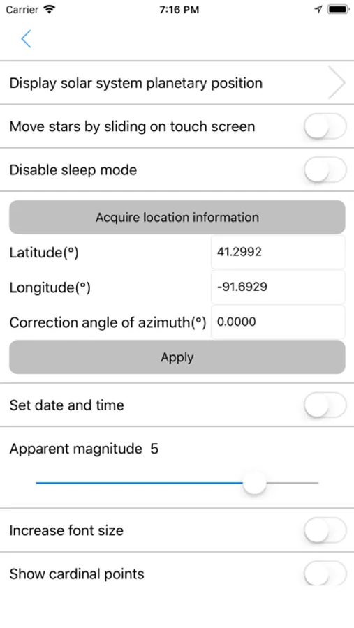If you want to launch this app from website by specifying equator coordinates, please prepare the following link.