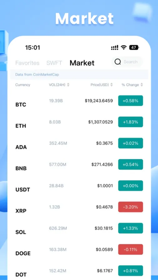 • Track the market and follow your favorite tokens.