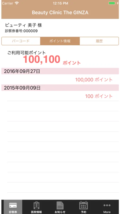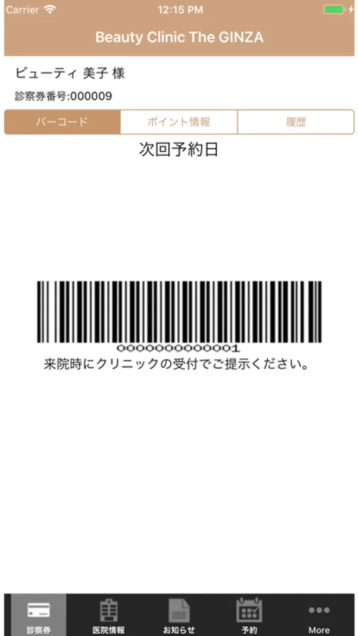 BEAUTY CLINIC The GINZAの電子診察券です。