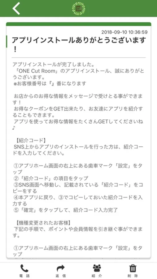 ONE Cut RoomのアプリをSNSを通じてお友達に紹介する事ができます。