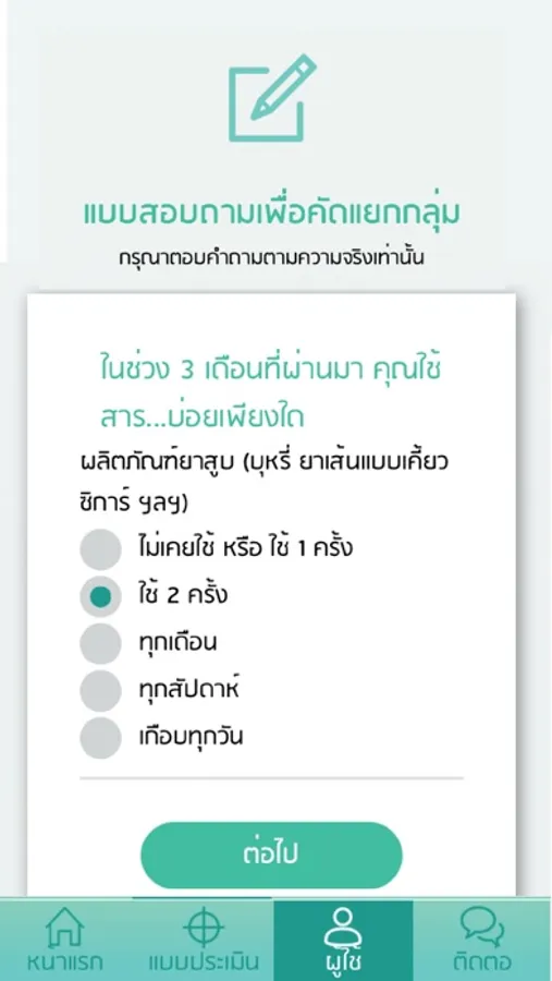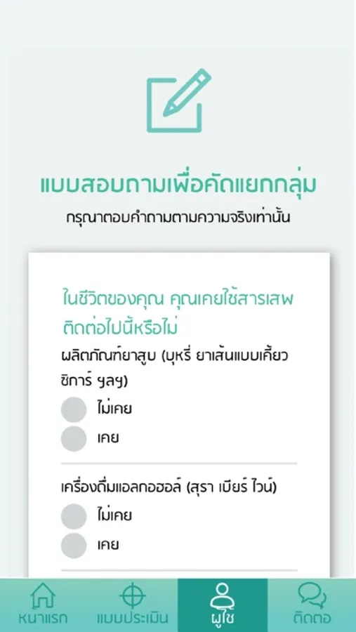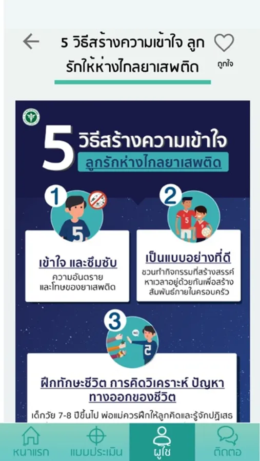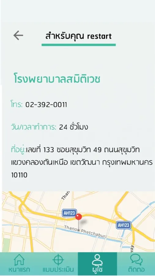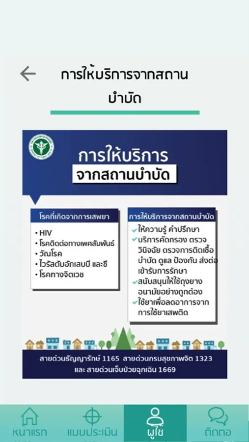 ภายใน application นี้ ช่วยให้การเลิกยาเสพติดมีความ่ายขึ้น โดยลดขั้นตอนการคัดกรอง และ ลดความกังวลเมื่อต้องเข้าไปพบแพทย์ ที่โรงพยาบาลเอง เพราะเรามีระบบคัดกรอง เพื่อให้ทราบระดับของการติดยาเสพติด ทำให้ประเมินการรักษาที่แม่นยำ และ ช่วยลดขั้นตอนในการพบแพทย์ โดยสามารถโทรติดต่อศูนย์การรักษาได้โดยตรง