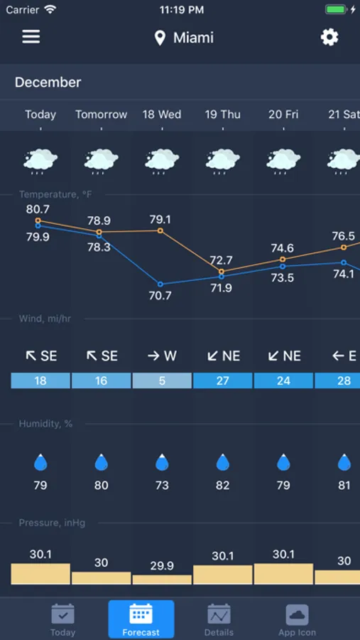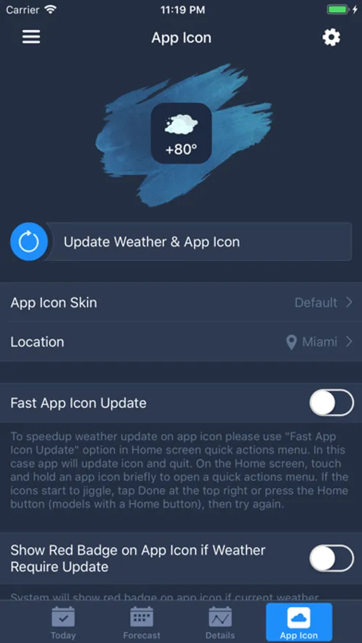 Choose how the weather will look on the app icon. Icon can be dark or light, or may just show temperature. It is your choice.