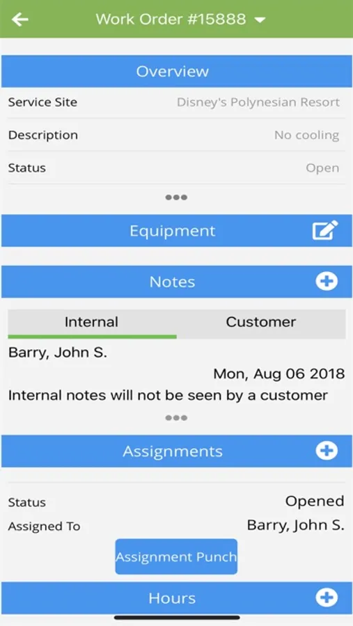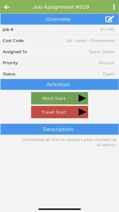 Mobile application that provides customer's employees with real time access to view and manage work order and construction project information.
