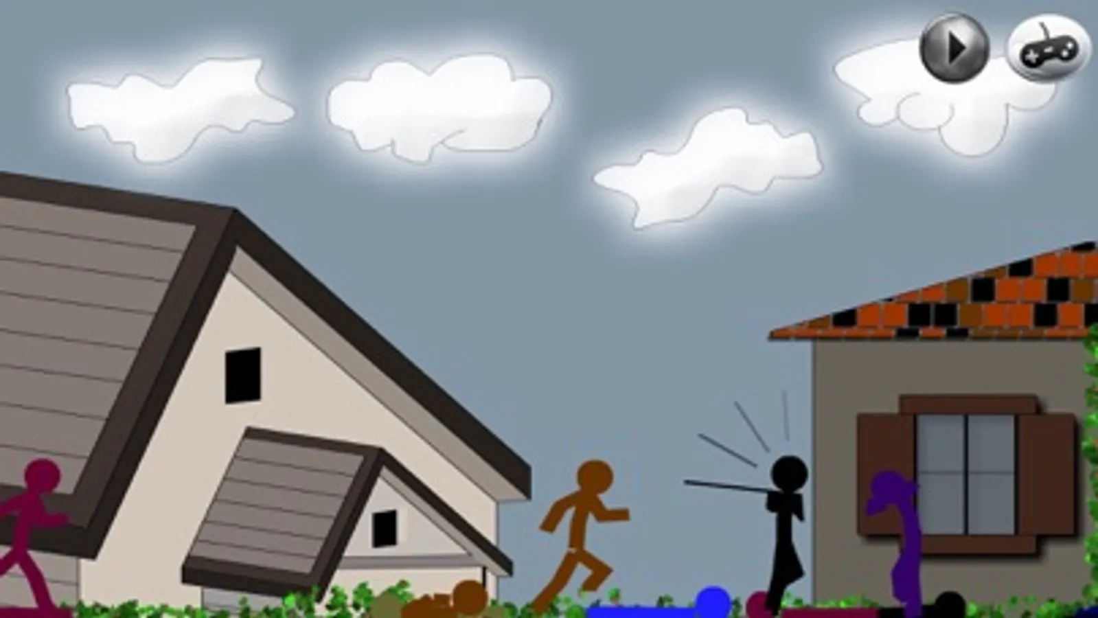 You as the chosen stick guy should mindlessly beat them up. Nobody knows why you are the chosen, nor anyone knows why these idiots run towards you, just to get kicked in their sensitive parts.
