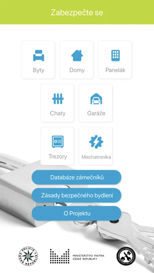 V současné době se v České republice, stejně jako v okolních sousedních státech, objevují stále nové trendy v problematice vloupání do obydlí. Vyvstává proto potřeba informovat veřejnost o nových způsobech ochrany majetku, a to především o účinným technickým a elektronickým zabezpečení a jeho vhodné kombinaci. Policie České republiky se v rámci své činnosti snaží o eliminaci příčin majetkové trestné činnosti, a proto ve spolupráci s odbornými subjekty vytvořila tuto mobilní aplikaci, která bude pro občany odborným návodem. Cech mechanických zámkových systémů ČR je odborným spolkem, který působí v oblasti mechanických a elektromechanických zábranných prostředků. Členové z řad předních světových výrobců zámkové techniky, členové zámkaři, klíčaři a technici jsou připraveni, svými zkušenostmi a odbornou úrovní, poradit občanům. Poradit Vám, jak správně zabezpečit svůj majetek, tak aby to bylo účinné a praktické, zejména s využitím certifikovaných řešení. Spuštěná aplikace umožní občanům získat důležité informace, které jistě přispějí ke zvýšení pocitu bezpečí. Vždy je důležité postupovat preventivně, a ne až po nutných důsledcích krádeže vloupáním. Ministerstvo vnitra vítá další společný preventivní projekt zaměřený na relevantní informování veřejnosti o možnostech ochrany majetku a osob.
