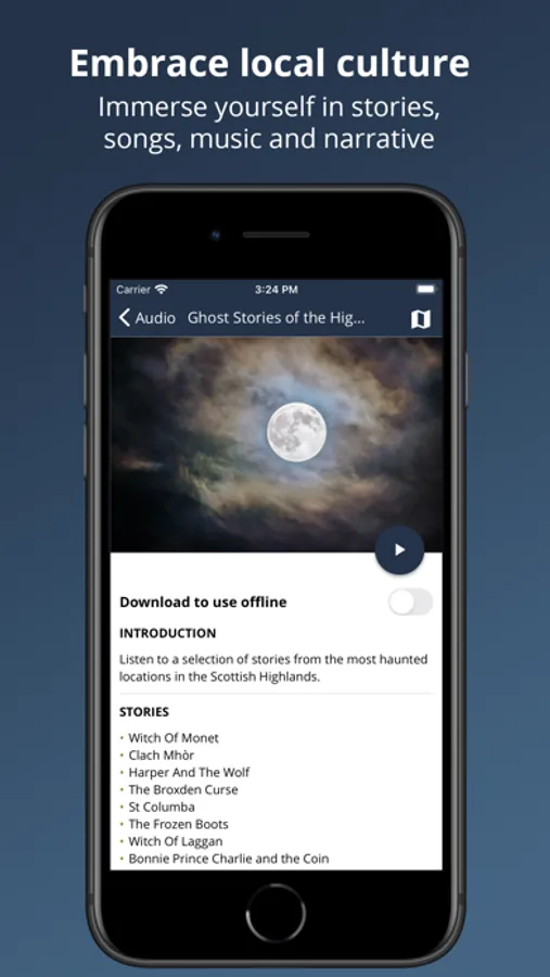 Audio to accompany you - Be moved by music and songs and enjoy stories about the surrounding area.