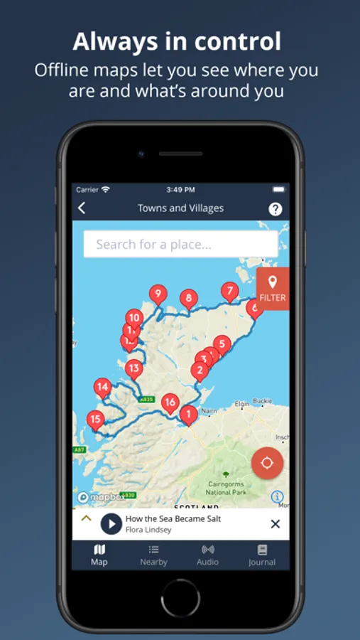 Tailor your trip - Powerful map filters let you tailor your trip, whether you want to discover a hidden gem, find a scenic view, natural wonder or historic building. Or even just the closest car park!