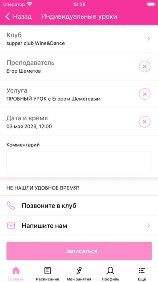 С помощью приложения вы свободно сможете записываться на индивидуальные и групповые занятия, оперативно получать информацию об изменениях, а так же всегда быть в курсе всех специальных предложений