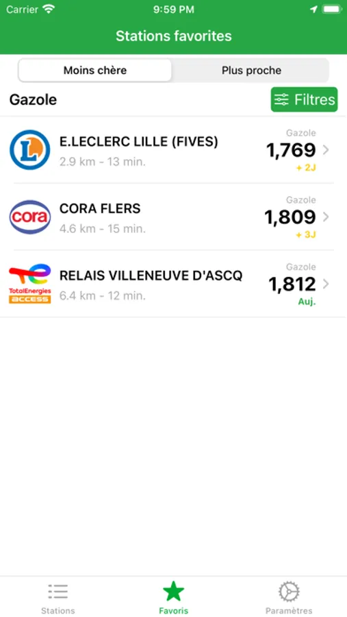 Les prix des carburants évoluent presque tout les jours. Ils sont mis à jour dans une base de données actualisée plusieurs fois par jour. Vérifiez régulièrement dans l’application pour faire le plein au meilleur prix.