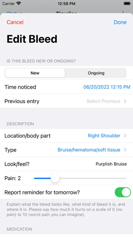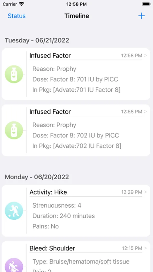 Use the app to record and review your own daily activities, infusions, and bleeds. The app also allows you to easily keep up with your own care as well by allowing you to see what you've taken and when.