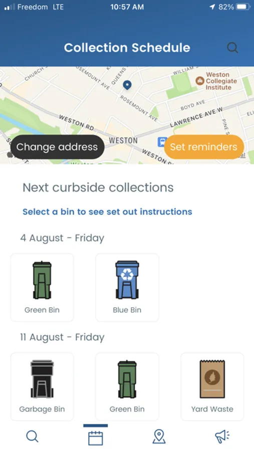 - Collection schedules and the ability to set reminders and opt in for alerts about service changes. Never miss your garbage or recycling day again!
