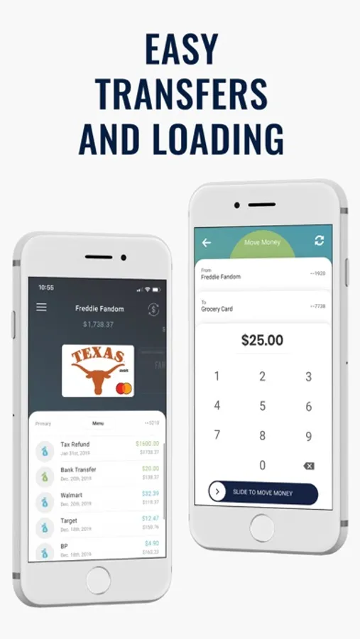 ‣ Set up one-time or automatic loads to your card and your sub-cards from linked bank accounts.