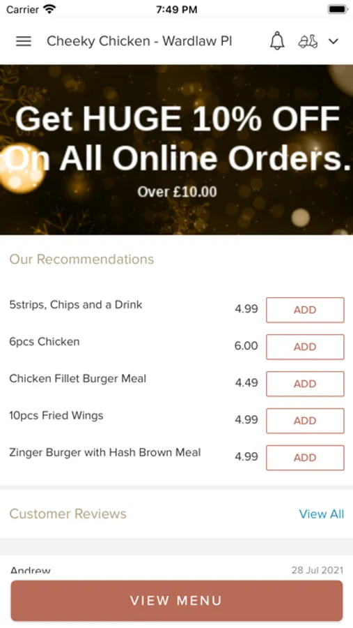 Here at Cheeky Chicken - Wardlaw Pl, we are constantly striving to improve our service and quality in order to give our customers the very best experience. As a result, we are finally proud to unveil and introduce our latest improvement, our new online ordering app! You can now relax at home and order your favourite freshly baked food from Cheeky Chicken - Wardlaw Pl. You can even pay online!
