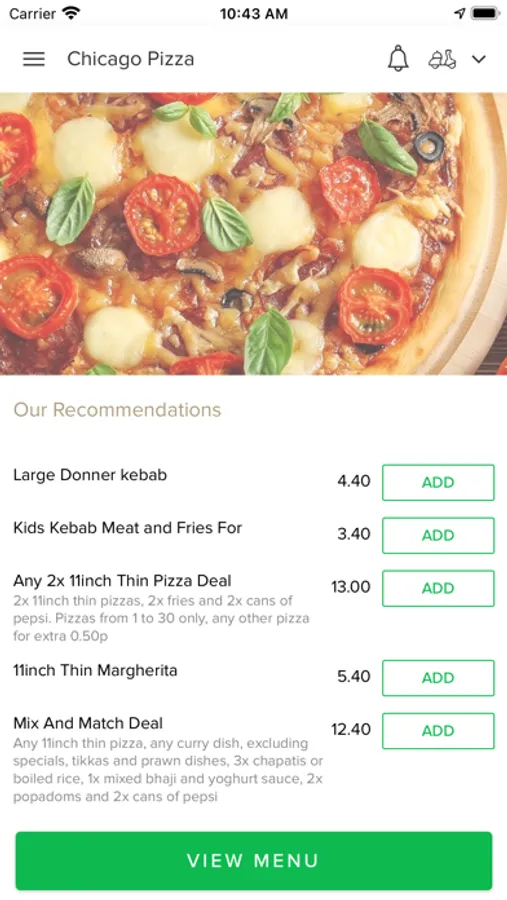 Chicago Pizza, we would warmly welcome all new and old costumers with delicious foods. new online ordering option in our app opens a completely new opportunity for you to save time & energy. variety of foods & drinks also using daily fresh ingredients is our unique way to create food you desire.