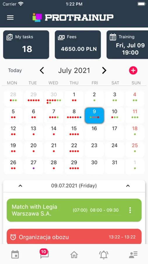 The application is dedicated for users of the ProTrainUp system. The application can be used by the owners of the academy, as well as coordinators, coaches, players and their parents. The application gives  the opportunity to manage the work of the academy through a club calendar, control the status of premium payments, attendance control and  simple and effective communication between all users of the club. What's more, from the application level, the trainer has the ability to plan a traning, match or check attendance.