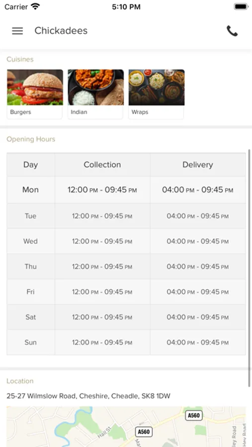 Order food online in Cheadle! It's so easy to use, fast and convenient. Try our new, online app which contains our entire takeaway menu. The Chickadees is located in Cheadle, Cheshire.