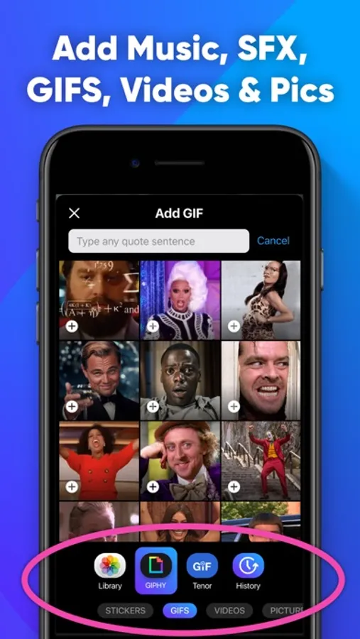 • Use the Yarn feature to search for and instantly add movies/ tv clips. Just type any quote!