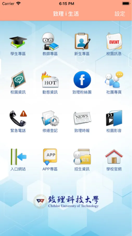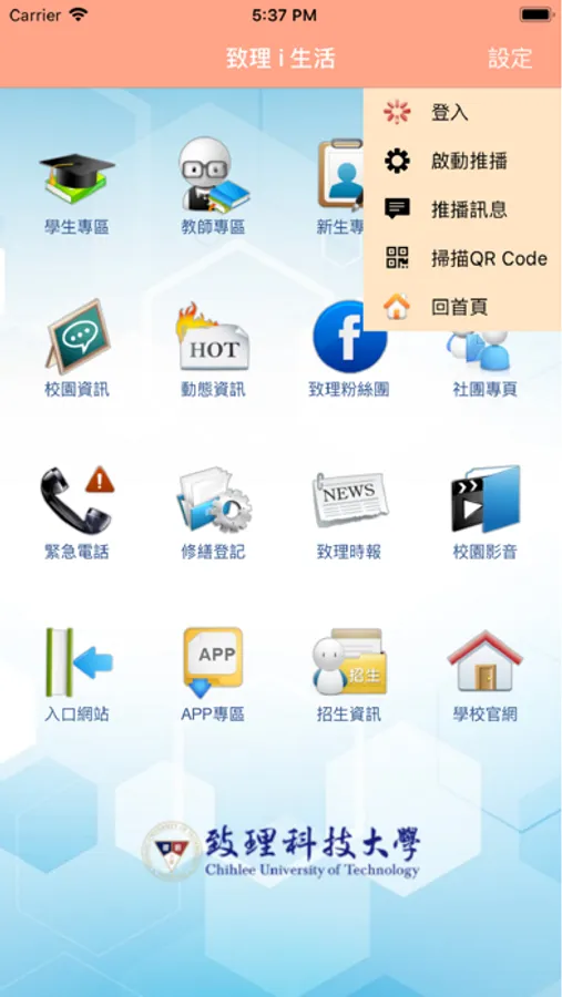 致理i生活,整併校內師生各項常用資訊,讓本校教職員生可以即時了解校園資訊及查詢校務資訊,亦可提供訪客了解校園活動。功能如下: