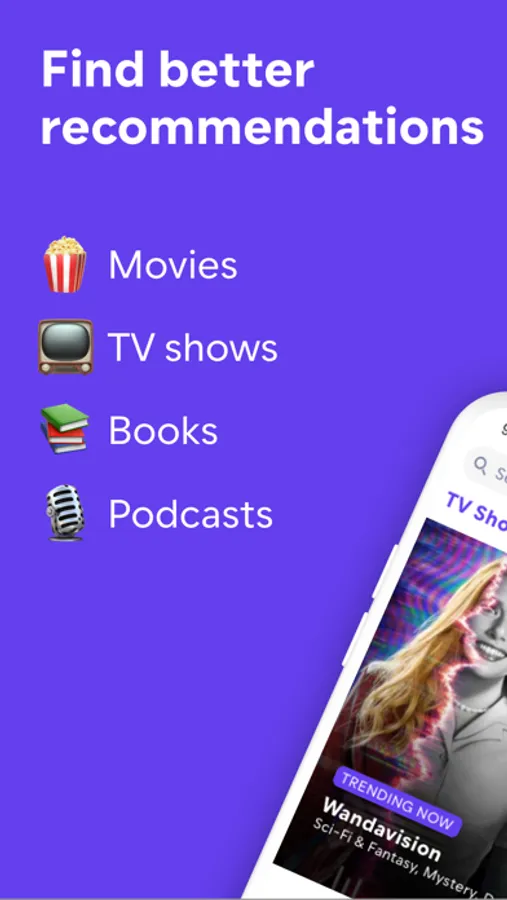 * Start getting the best recommendations for movies, TV shows, books, podcasts No more endless scrolling on Netflix, browsing generic movie recommendations on IMDb, or having to look at Goodreads terrible UI (yes, we went there)