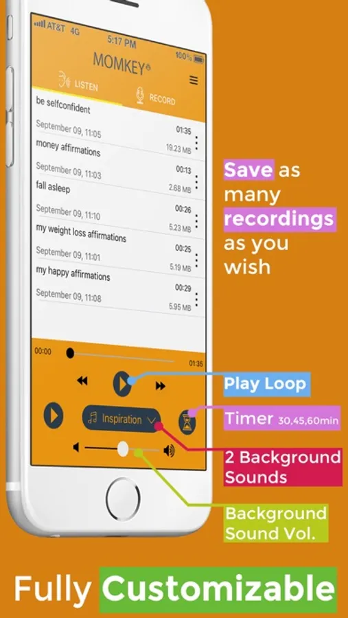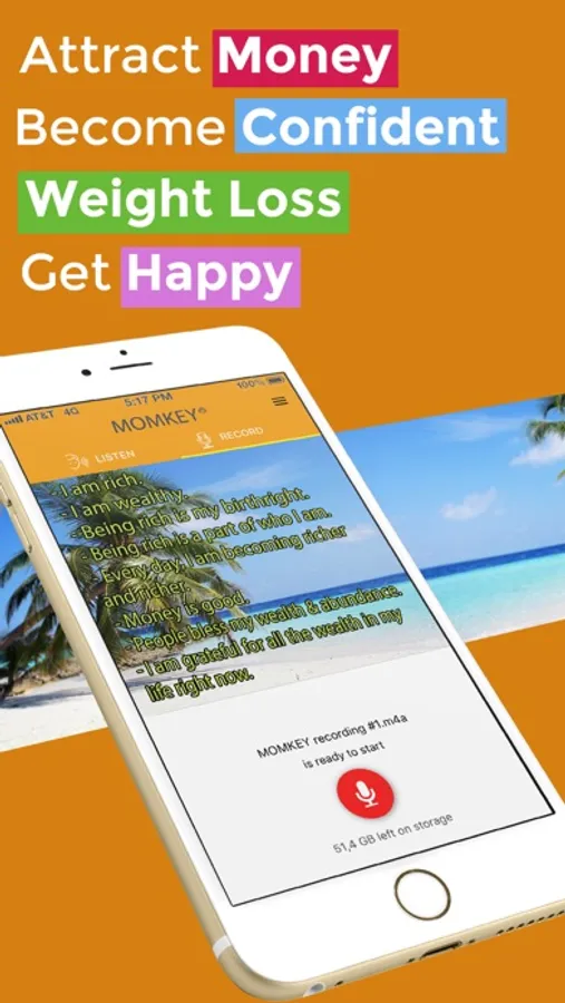 Introducing MOMKEY Self Hypnosis, the latest way to create extremely effectice affirmations to attract Money, Weight Loss, delete depression and be happier, or program yourself for more self-confidence and let shyness behind you.