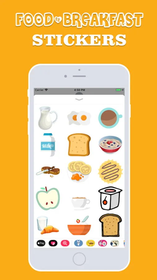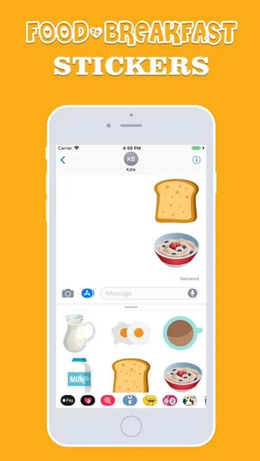 • Tap the icon on the lower left corner and then the plus icon to access the App Store for iMessage. Tap Manage tab and find Food and Breakfast Stickers to add it.
