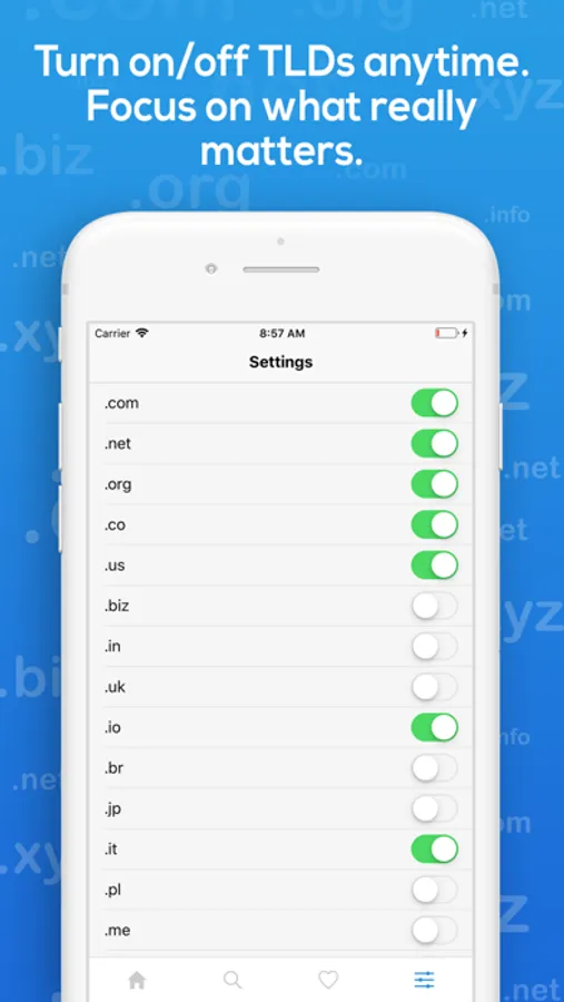 .com, .org, .net, .me, .io, .tv, .uk, .br, .jp, .it, .pl. ...