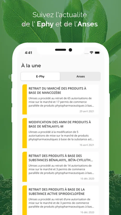 Suivez l'actualité de l'E'Phy et de l'Anses. Ne ratez pas les retrait des produits ou la modification des AMM