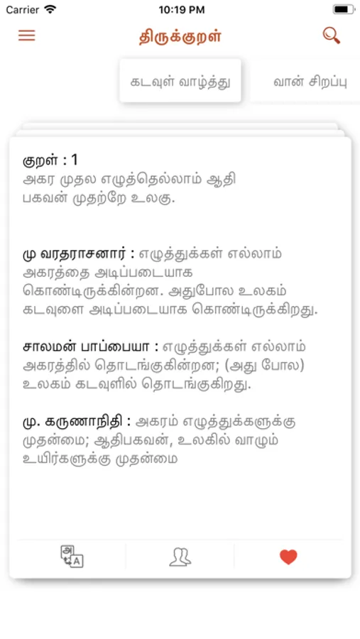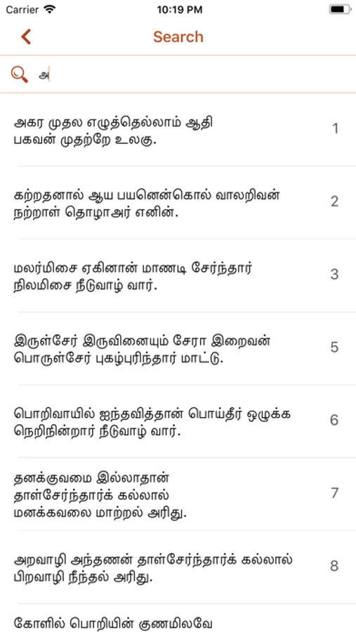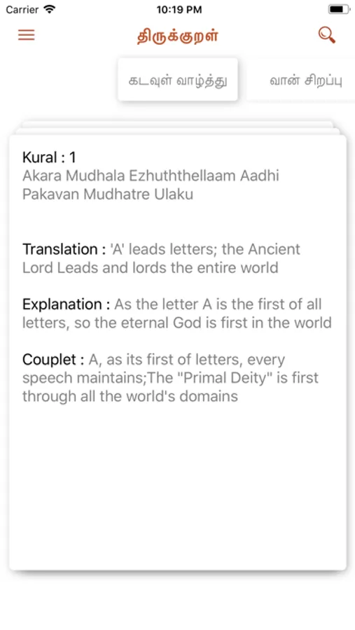 * Aratupaal: Dharma, dealing with virtues independent of the surroundings (Chapters 1-38)