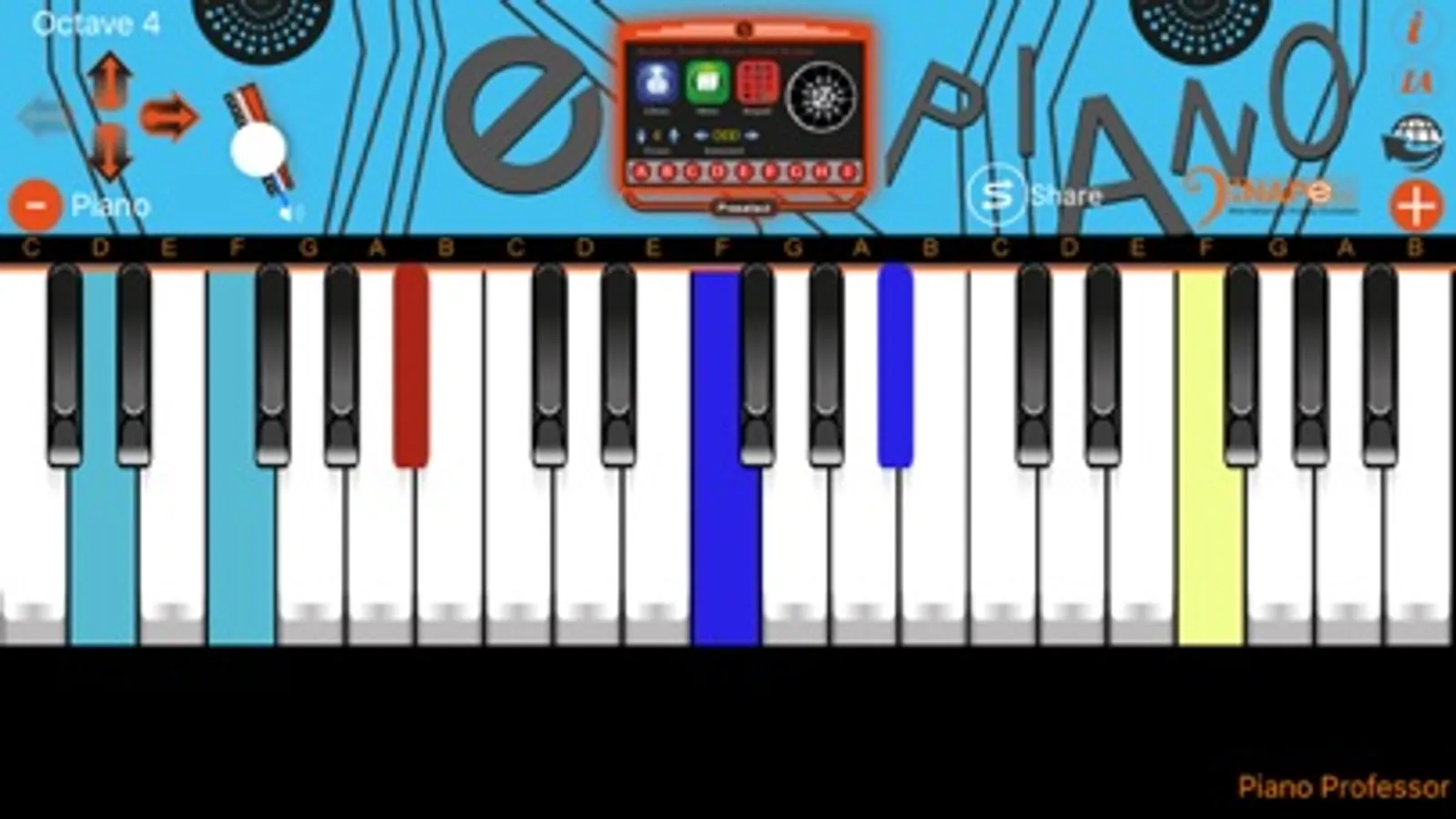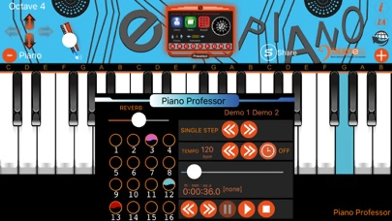 The In-App page allows users to download the Piano Professor which teaches you how to play any song available on the web in the form of MIDI files. If you cannot locate your favourite song in the form of MIDI files on the web, you or your music teacher/producer can upload an unlimited number of MIDI files which you can then access for learning/practicing purposes.