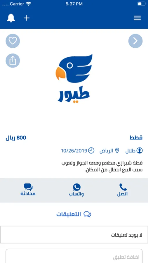 تطبيق متخصص في بيع وشراء الطيور والحيوانات