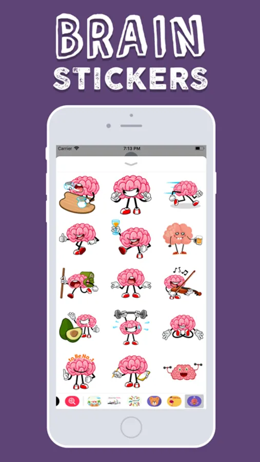 • Tap the icon on the lower left corner and then the plus icon to access the App Store for iMessage. Tap Manage tab and find Brain Emojis to add it.