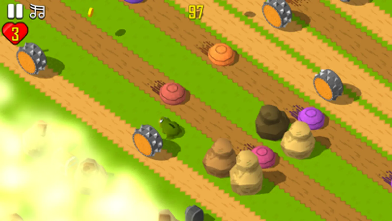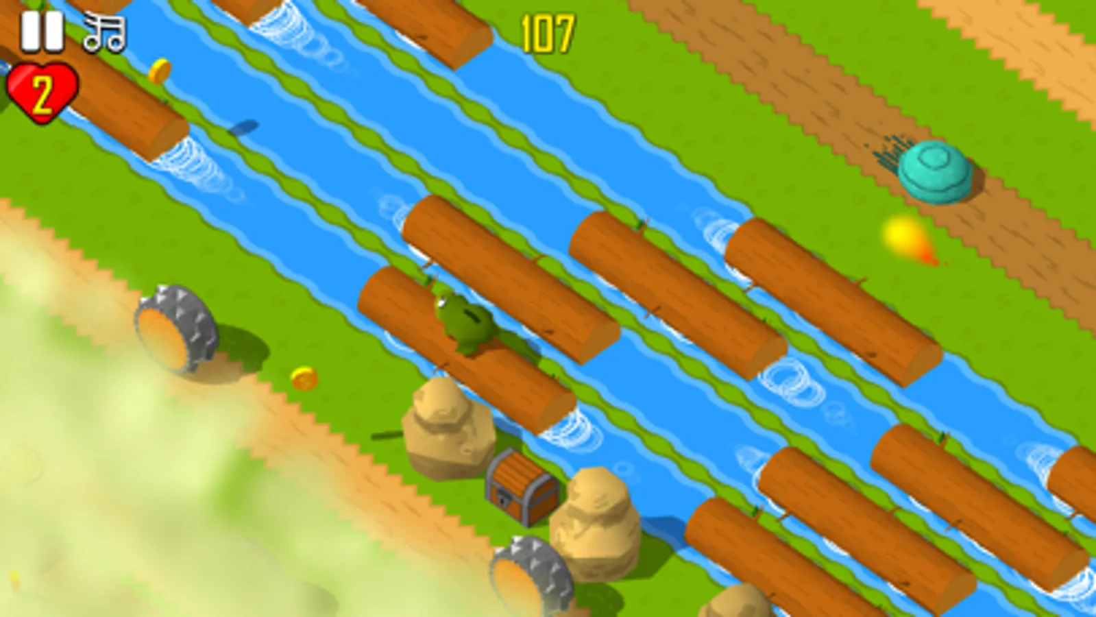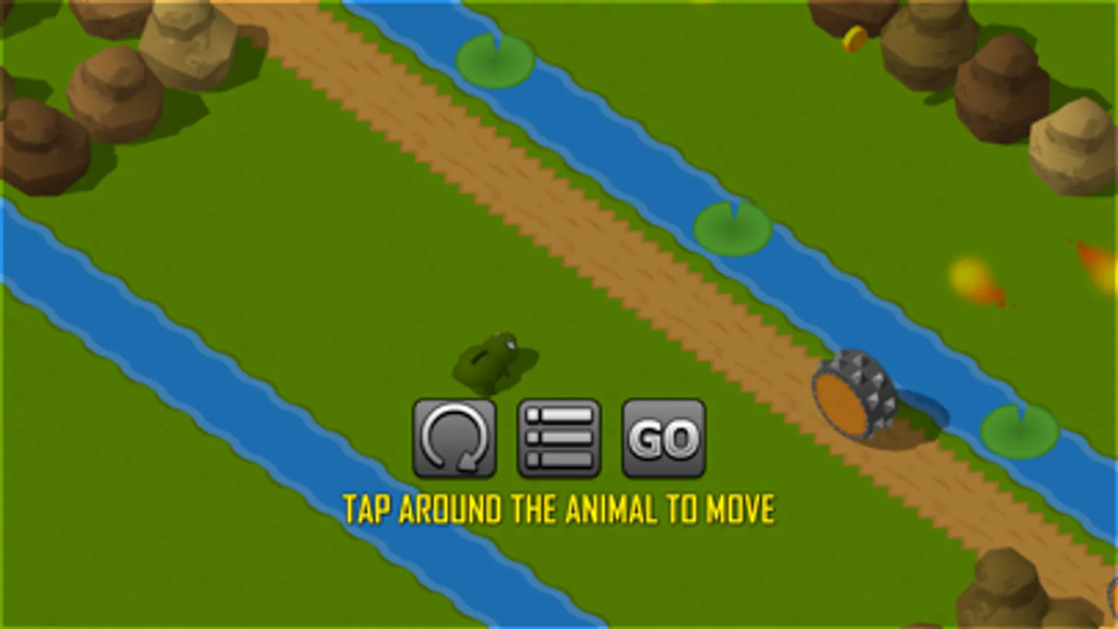 Help animals to cross dangerous countryside and collect coins to fill his belly.